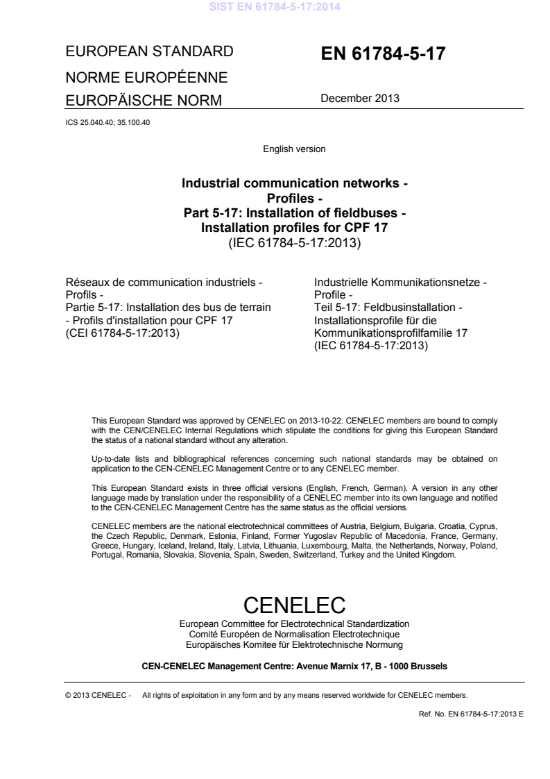 Ta slovenski standard je istoveten z: EN 61784-5-17:2013