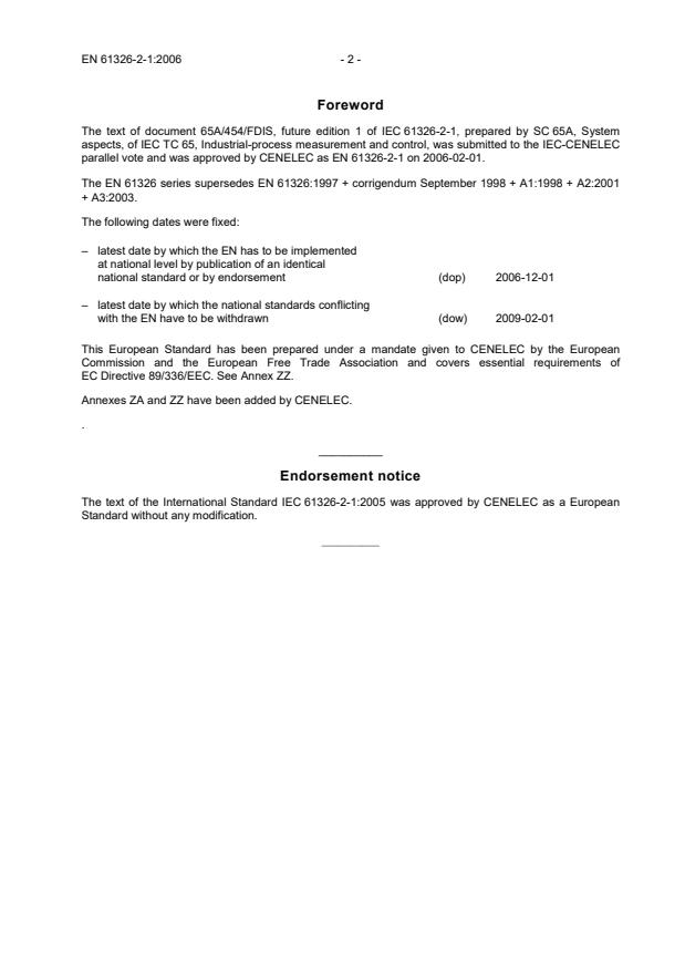The text of the International Standard IEC 61326-2-1:2005 was approved by CENELEC as a European