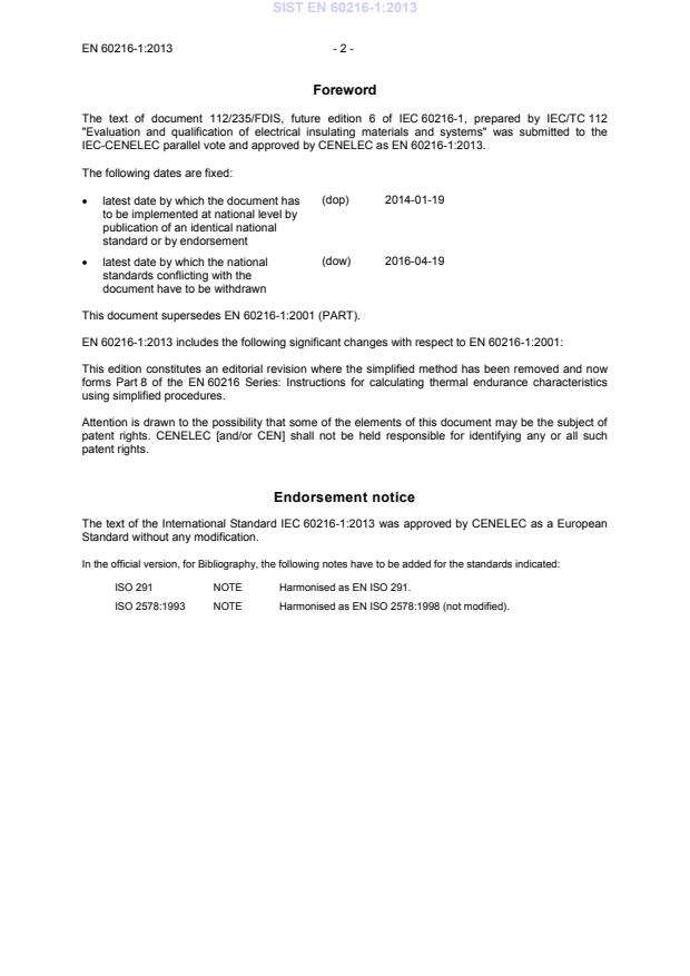 ISO 291 NOTE Harmonised as EN ISO 291. ISO 2578:1993 NOTE Harmonised as EN ISO 2578:1998 (not modified). SIST EN 60216-1:2013