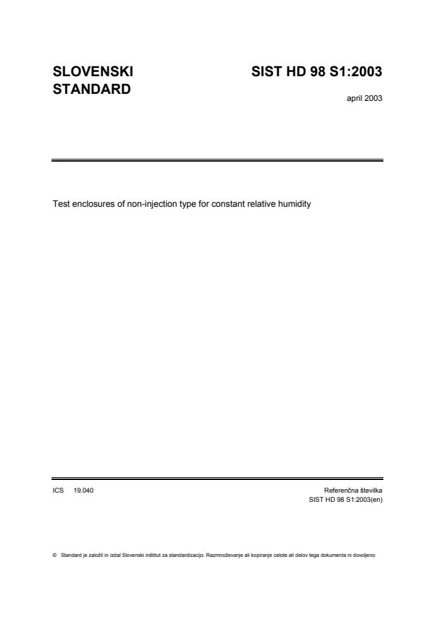 HD 98 S1:1977 is a standardization document published by CLC. Its full title is "Test enclosures of non-injection type for constant relative humidity". This standard covers: Specifies performance and constructional requirements for conditioning enclosures with forced air circulation which may be used to carry out humidity tests on components or equipment of similar articles.