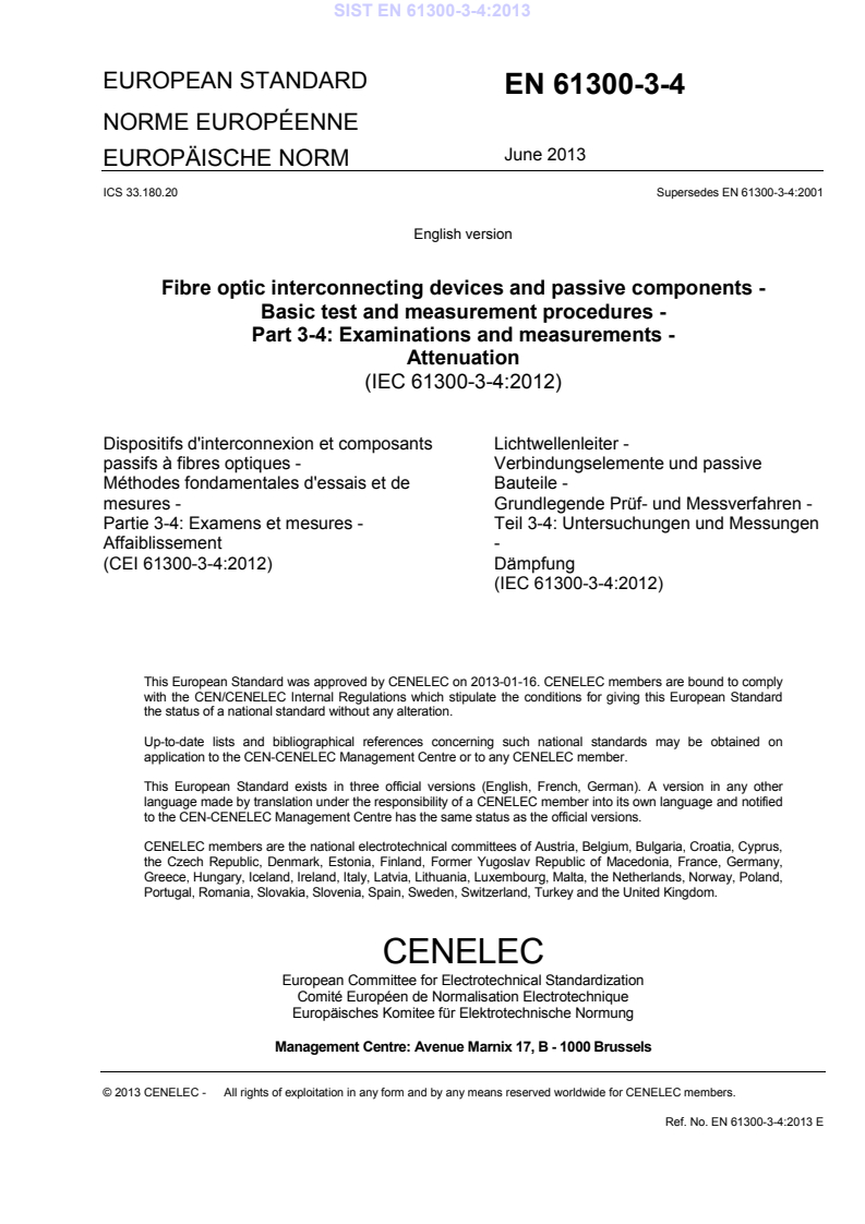 ICS 33.180.20 Supersedes EN 61300-3-4:2001