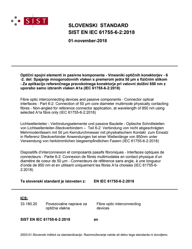 Ta slovenski standard je istoveten z: EN IEC 61755-6-2:2018