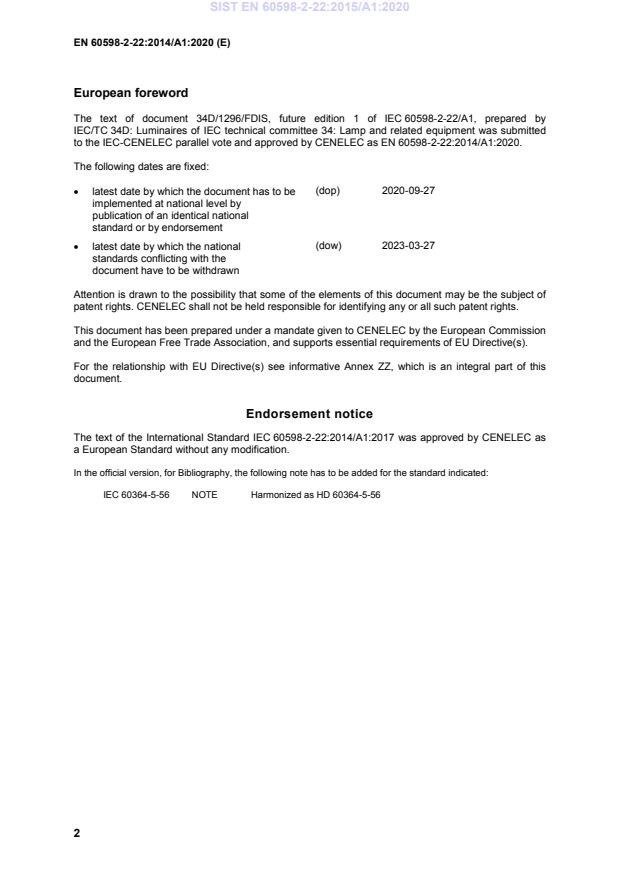 to the IEC-CENELEC parallel vote and approved by CENELEC as EN 60598-2-22:2014/A1:2020.