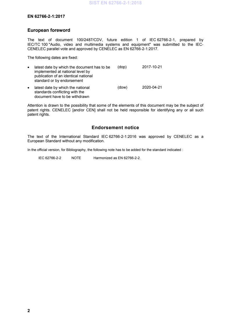 CENELEC parallel vote and approved by CENELEC as EN 62766-2-1:2017.