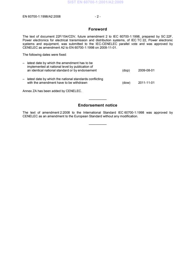Ta slovenski standard je istoveten z: EN 60700-1:1998/A2:2008