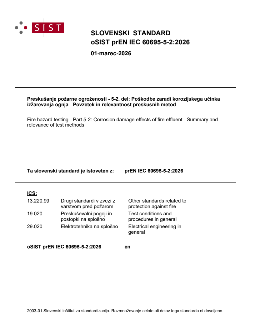 Ta slovenski standard je istoveten z: prEN IEC 60695-5-2:2026