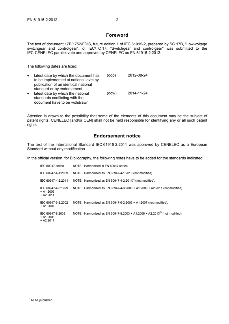 EN 61915-2:2012 has the following relationships with other standards: It is inter standard links to EN 60947-1:2007, EN 61915-1:2008, EN 60947-1:2007/A1:2011. Understanding these relationships helps ensure you are using the most current and applicable version of the standard.