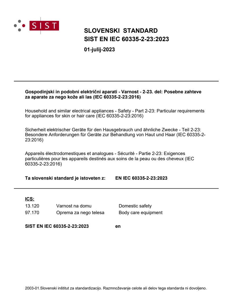 Keywords: EN IEC 60335-2-23:2023, household electrical appliances safety, skin or hair care appliances, hairdryer safety, hair straightener standard, IEC 60335-2-23 compliance.