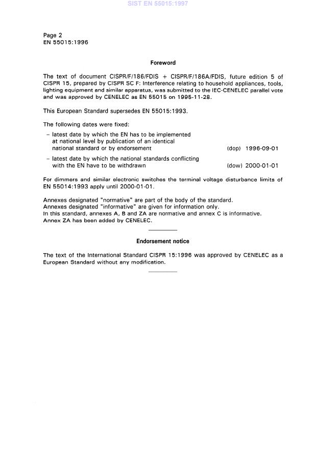 Ta slovenski standard je istoveten z: EN 55015:1996