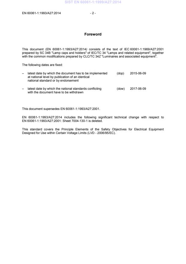 This amendment A27 modifies the European Standard EN 60061-1:1993; it was approved by CENELEC on 2014-06-09. CENELEC