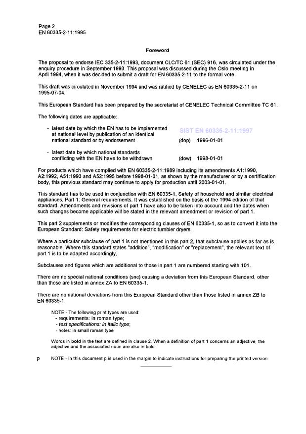 EN 60335-2-11:1995 is associated with the following European legislation: EU Directives/Regulations: 2006/95/EC, 73/23/EEC; Standardization Mandates: M/083. When a standard is cited in the Official Journal of the European Union, products manufactured in conformity with it benefit from a presumption of conformity with the essential requirements of the corresponding EU directive or regulation.
