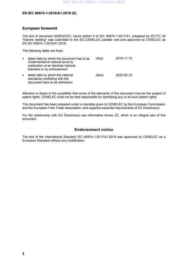 This amendment A1 modifies the European Standard EN IEC 60974-1:2018; it was approved by CENELEC on 2019-02-15. CENELEC