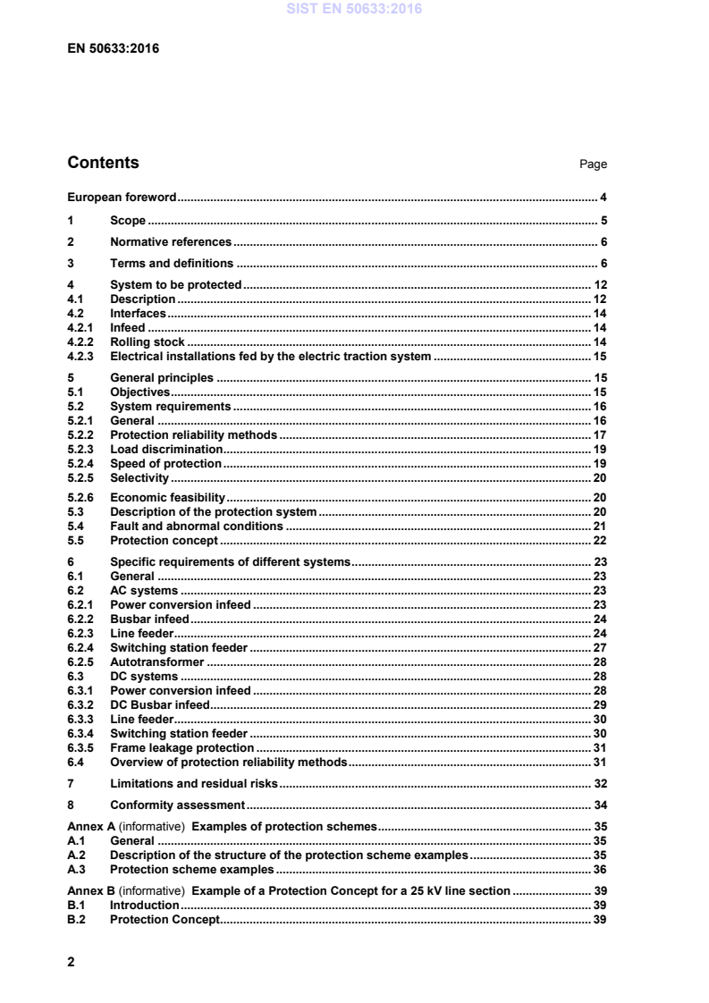 Example of a Protection Concept for a 25 kV line section . 39 B.1 Introduction . 39 B.2 Protection Concept. 39 SIST EN 50633:2016