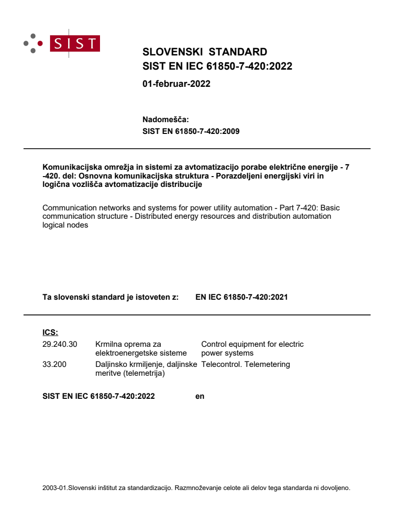 SIST EN 61850-7-420:2009