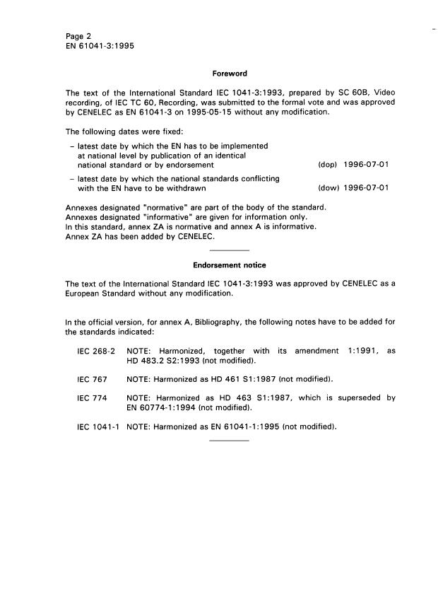- Normative references within the standard: IEC 94-3, IEC 268 series, IEC 386, IEC 1053‑1/2 and IEC 1054 (VTR-specific FM audio guidance).