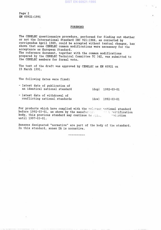 EN 60921:1991/A2:1995 is a standard published by CLC. Its full title is "Ballasts for tubular fluorescent lamps - Performance requirements". This standard covers: Superseded by EN 60921:2004