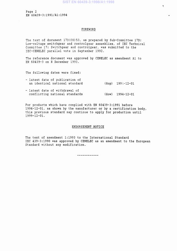 Ta slovenski standard je istoveten z: EN 60439-3:1991/A1:1994