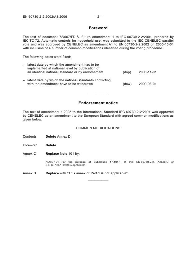 vote and was approved by CENELEC as amendment A1 to EN 60730-2-2:2002 on 2005-10-01