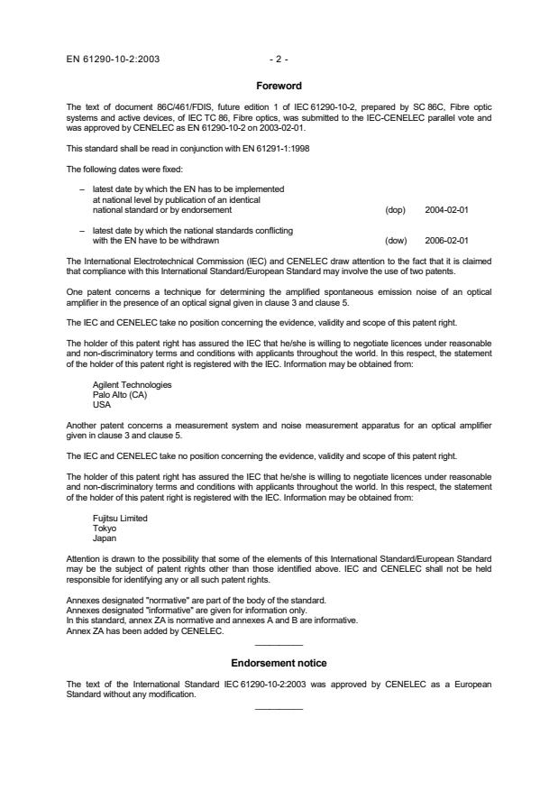 EN 61290-10-2:2003 has the following relationships with other standards: It is inter standard links to EN 61290-10-2:2008, EN 61291-1:1998, EN 61290-10-1:2003, EN 61290-10-3:2003, EN 61291-1:2006. Understanding these relationships helps ensure you are using the most current and applicable version of the standard.