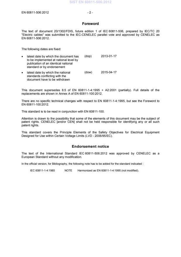 This document supersedes 8.5 of EN 60811-1-4:1995 + A2:2001 (partially). Full details of the