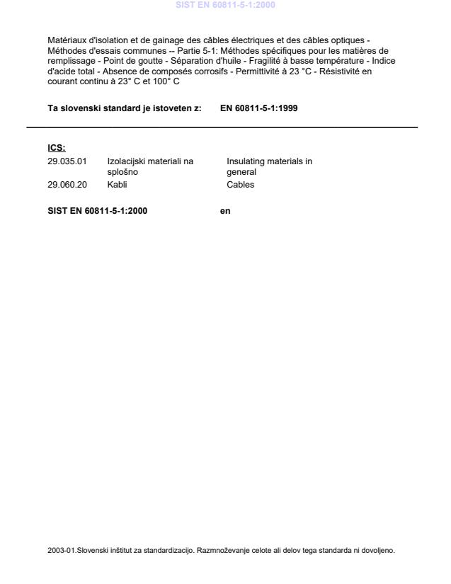 Ta slovenski standard je istoveten z: EN 60811-5-1:1999