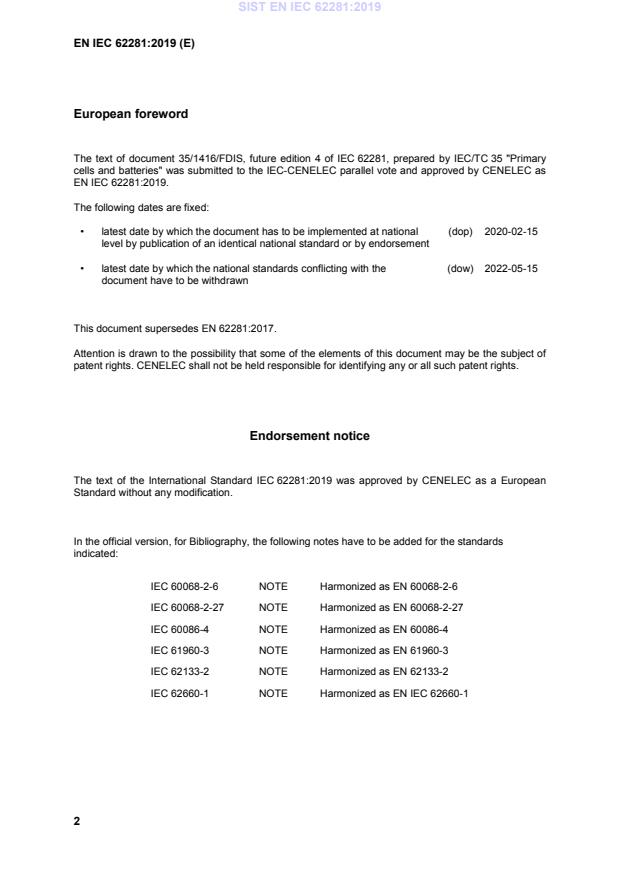 Ta slovenski standard je istoveten z: EN IEC 62281:2019