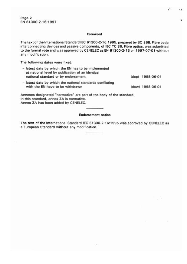Superseded by EN 61300-2-16:2006 * Withdrawn in 2007-11-01 following withdrawal vote on EN 61300-2-16:2006