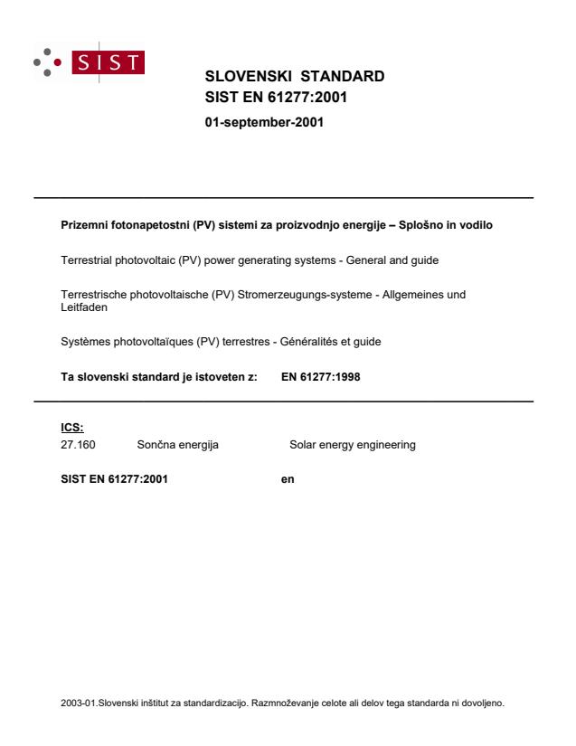 Ta slovenski standard je istoveten z: EN 61277:1998