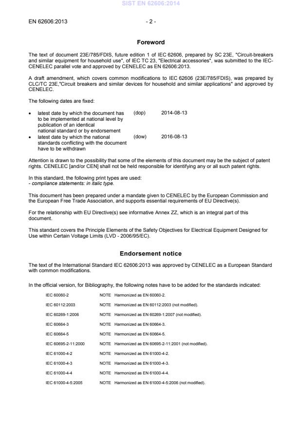 Endorsement notice The text of the International Standard IEC 62606:2013 was approved by CENELEC as a European Standard with common modifications.
