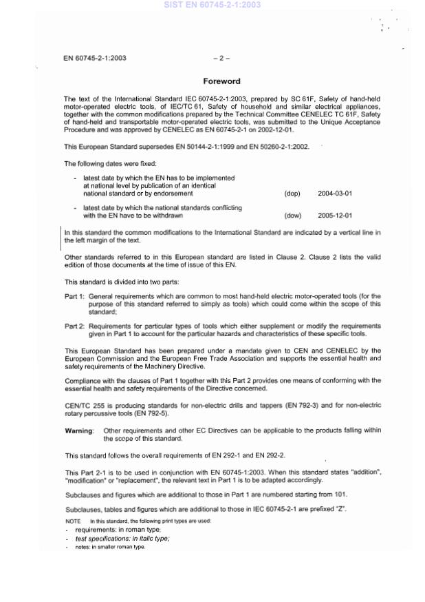 EN 60745-2-1:2003 is associated with the following European legislation: EU Directives/Regulations: 98/37/EC. When a standard is cited in the Official Journal of the European Union, products manufactured in conformity with it benefit from a presumption of conformity with the essential requirements of the corresponding EU directive or regulation.