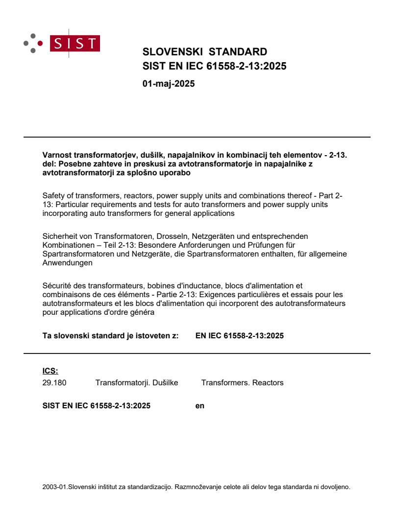 Ta slovenski standard je istoveten z: EN IEC 61558-2-13:2025
