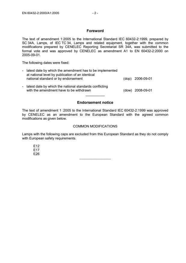 formal vote and was approved by CENELEC as amendment A1 to EN 60432-2:2000 on
