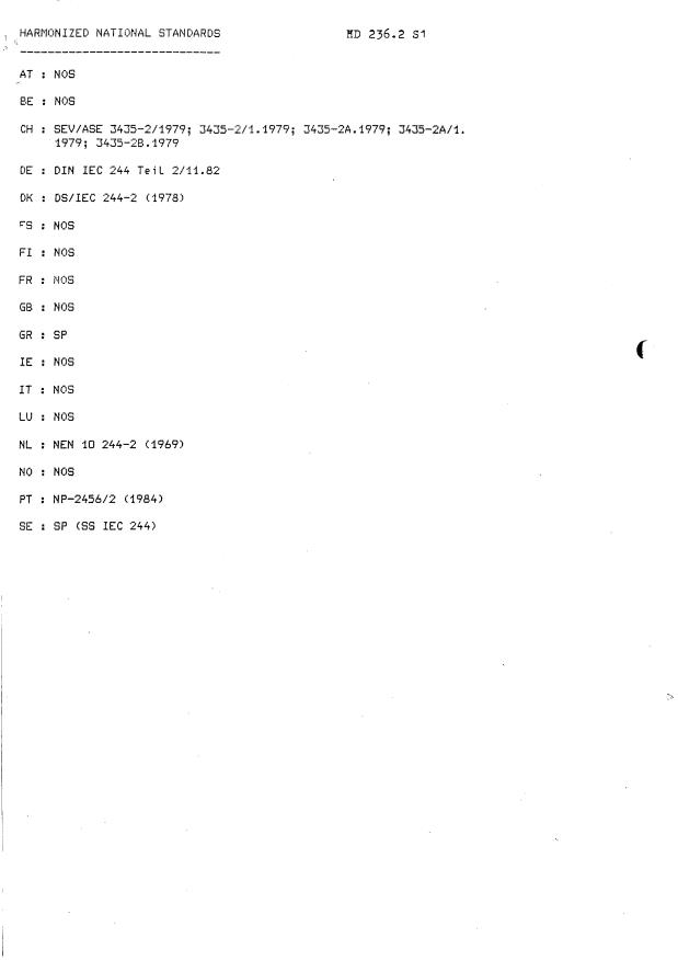 HD 236.2 S1:1977 has the following relationships with other standards: It is inter standard links to EN 60244-15:2000, HD 236.4 S2:1978, HD 236.3 S1:1977, EN 60244-11:1993, EN 60244-12-2:1993. Understanding these relationships helps ensure you are using the most current and applicable version of the standard.