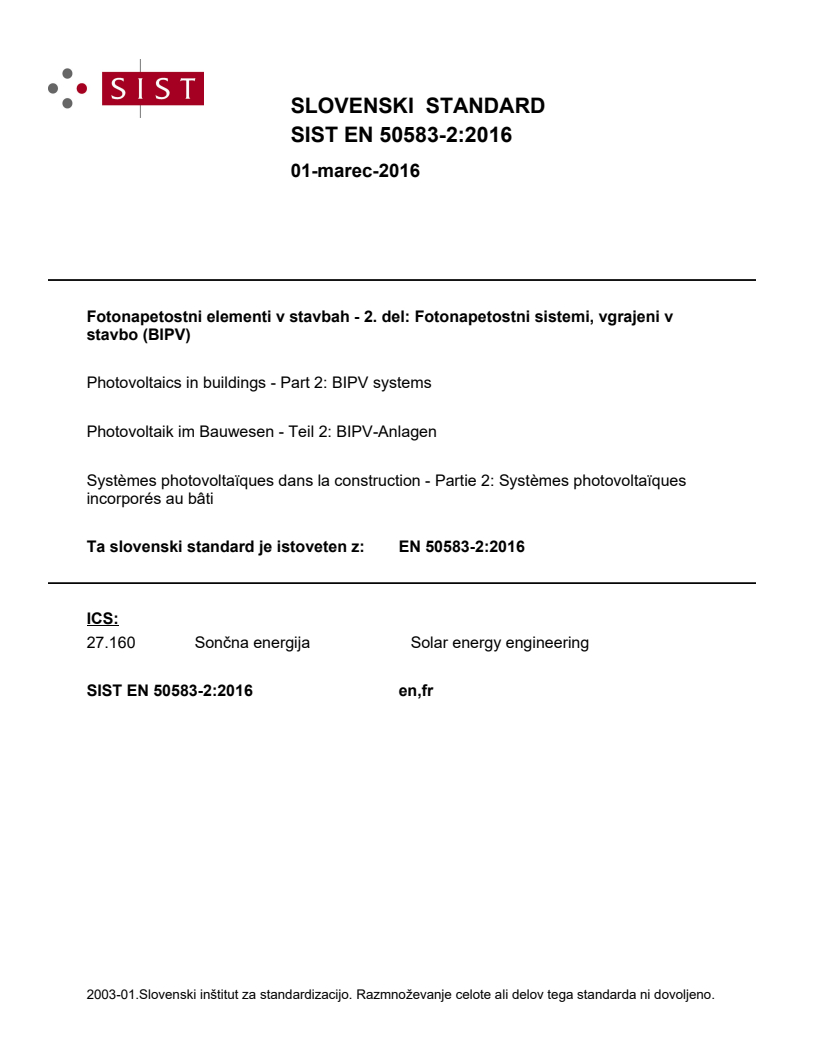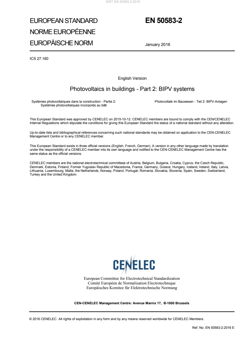 Keywords: EN 50583-2:2016, BIPV systems, photovoltaics in buildings, building-integrated photovoltaics, CPR, Low Voltage Directive, CENELEC.