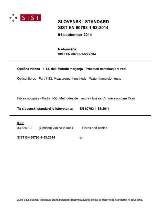 Ta slovenski standard je istoveten z: EN 60793-1-53:2014