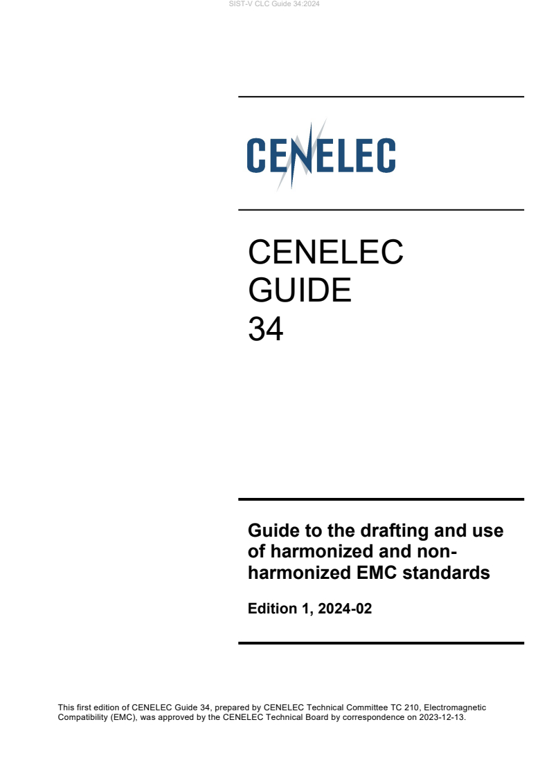 Keywords: CLC Guide 34, CENELEC Guide 34:2024, EMC standards, harmonized standards, Radio Equipment Directive, EMC Directive, Annex ZA, Annex ZZ, CENELEC TC210, electromagnetic compatibility.