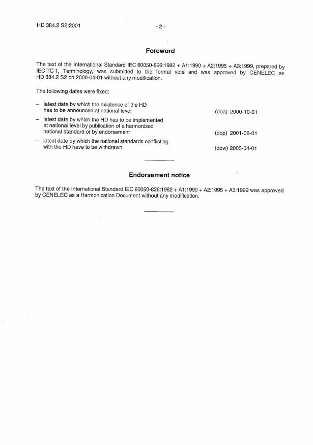 This national document is identical to HD 384.2 S2:2001 and is published with the permission of