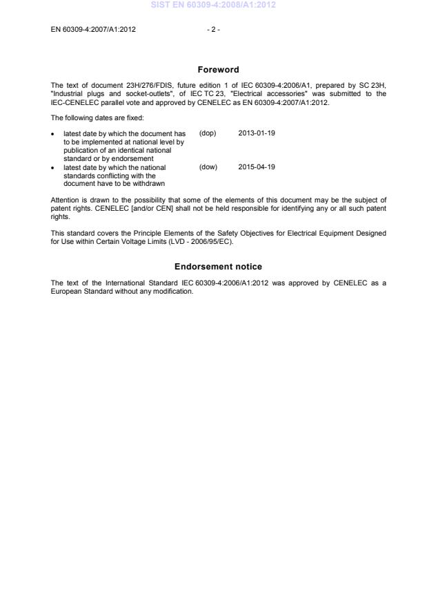 This amendment A1 modifies the European Standard EN 60309-4:2007; it was approved by CENELEC on 2012-
