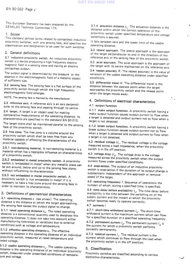 EN 50032:1980 is a standard published by CLC. Its full title is "Low-voltage switchgear and controlgear for industrial use - Inductive proximity switches - Definitions, classification and designation". This standard covers: D100/022: EN withdrawn