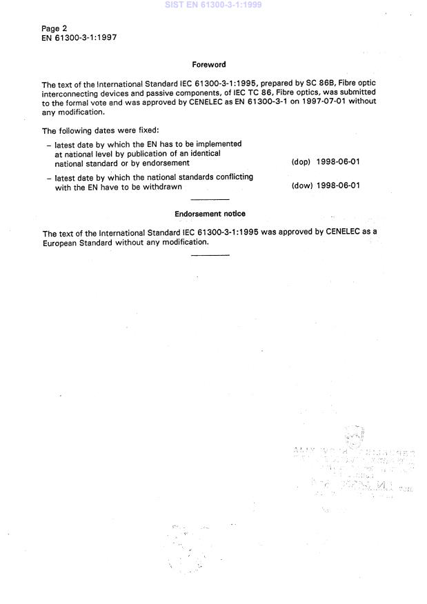 EN 61300-3-1:1997 has the following relationships with other standards: It is inter standard links to EN 61300-3-1:2005, EN 61300-2-42:2005, EN 61300-2-1:2003, EN 62134-1:2002, EN 61300-2-2:2003, EN 61300-2-44:2005, EN 61300-2-5:2002, EN 61300-2-48:2003, EN 61300-1:2003, EN 60794-1-1:1999, EN 60874-1:1999, EN 61300-2-47:2004, EN 61300-3-3:2003, EN 61300-2-6:1997, EN 61300-2-15:1997. Understanding these relationships helps ensure you are using the most current and applicable version of the standard.