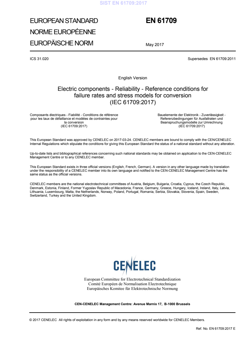 ICS 31.020 Supersedes EN 61709:2011