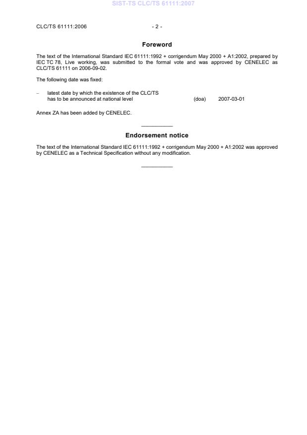 Ta slovenski standard je istoveten z: CLC/TS 61111:2006