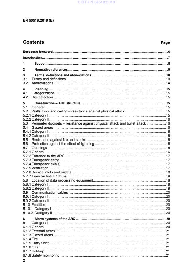 Ta standard določa zahteve za dve kategoriji sprejemnih centrov za alarme, kategorijo I in kategorijo II. Sprejemni center za alarme kategorije I ima glede zgradbe, varnosti in celovitosti zahtevnejšo zasnovo, zgradbo ter delovanje kot sprejemni center za alarme kategorije II.