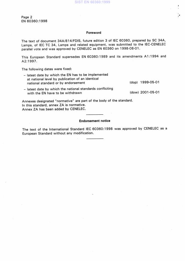 EN 60360:1998 has the following relationships with other standards: It is inter standard links to EN 60360:1989/A1:1994, EN 60360:1989/A2:1997, EN 60432-1:1994, EN 62776:2015, EN 62532:2011, EN 60968:2015, EN IEC 60598-1:2024, EN IEC 60598-1:2021, EN 60598-1:2008, EN 60598-1:2004, EN 60968:2013, EN 60598-1:2015, EN 60432-1:2000, EN 62931:2017, EN 61199:2011. Understanding these relationships helps ensure you are using the most current and applicable version of the standard.