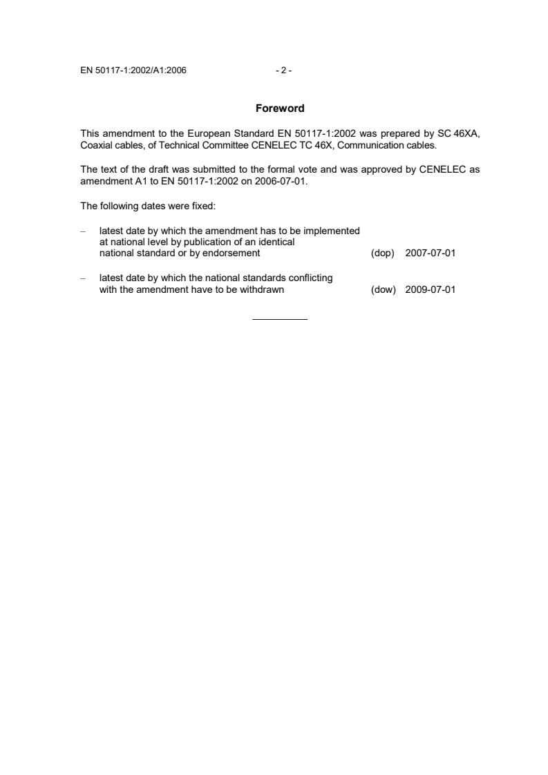 This amendment to the European Standard EN 50117-1:2002 was prepared by SC 46XA,
