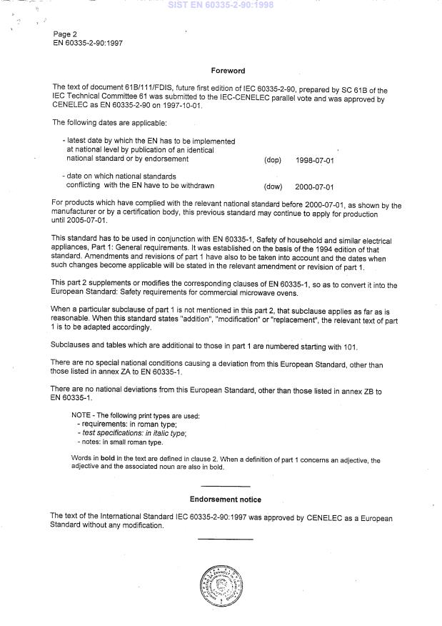 Ta slovenski standard je istoveten z: EN 60335-2-90:1997