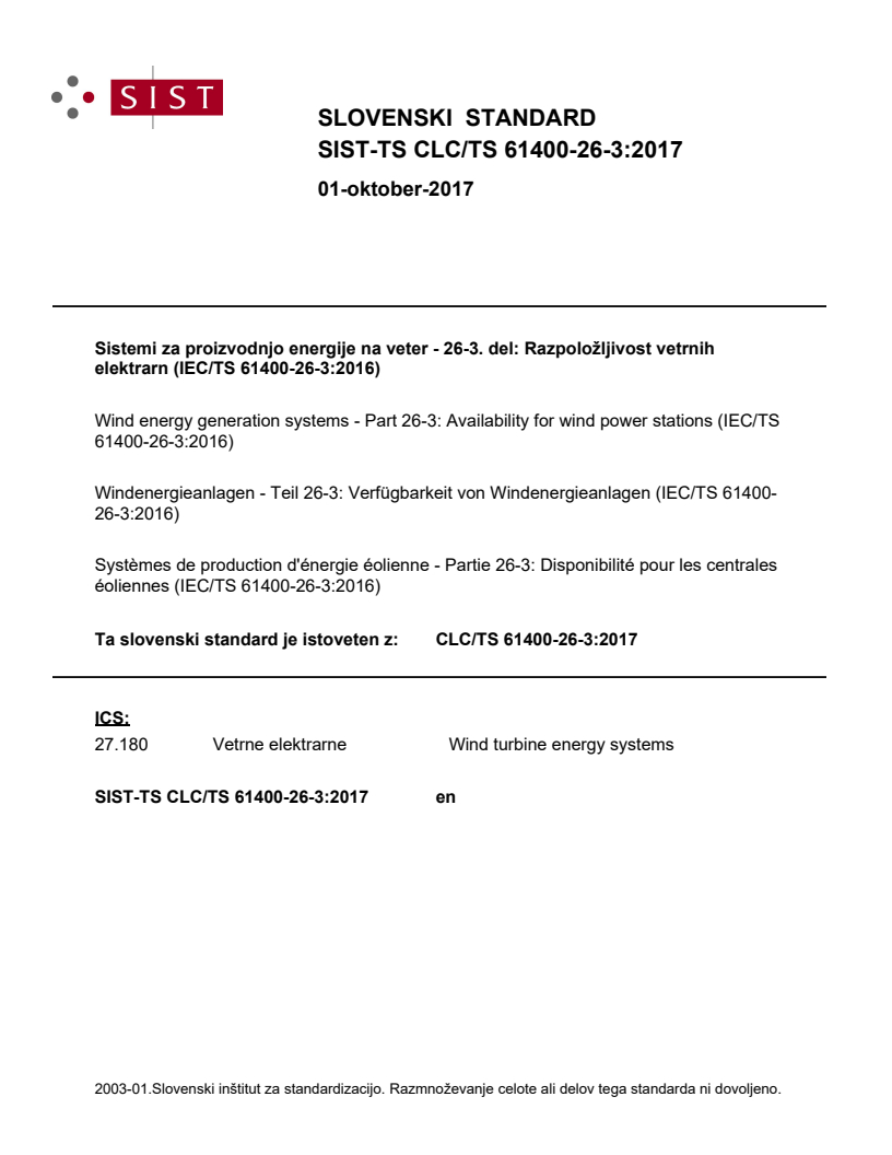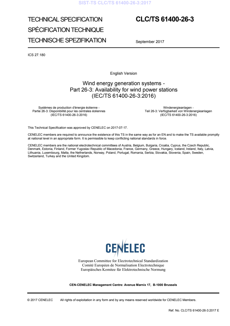 Ref. No. CLC/TS 61400-26-3:2017 E