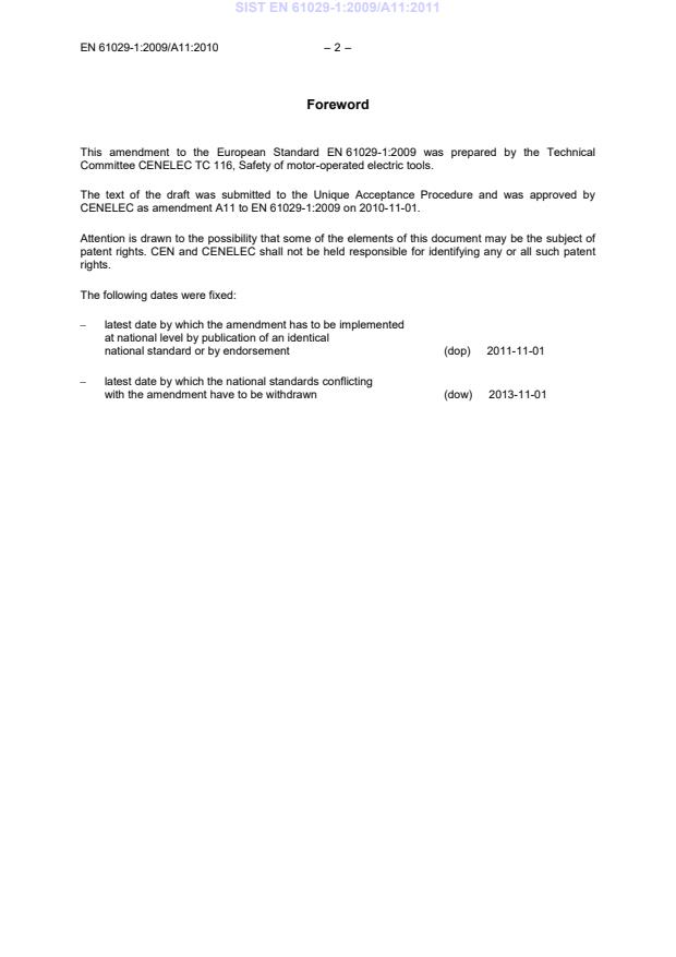 - The amendment was prepared by CENELEC TC 116 and may contain elements subject to patent rights.