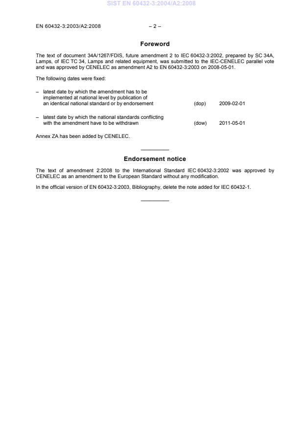 and was approved by CENELEC as amendment A2 to EN 60432-3:2003 on 2008-05-01.