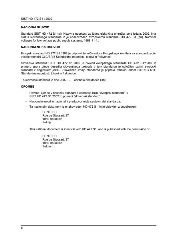 Slovenski standard SIST HD 472 S1:2002 je prevod evropskega standarda HD 472 S1:1988. V